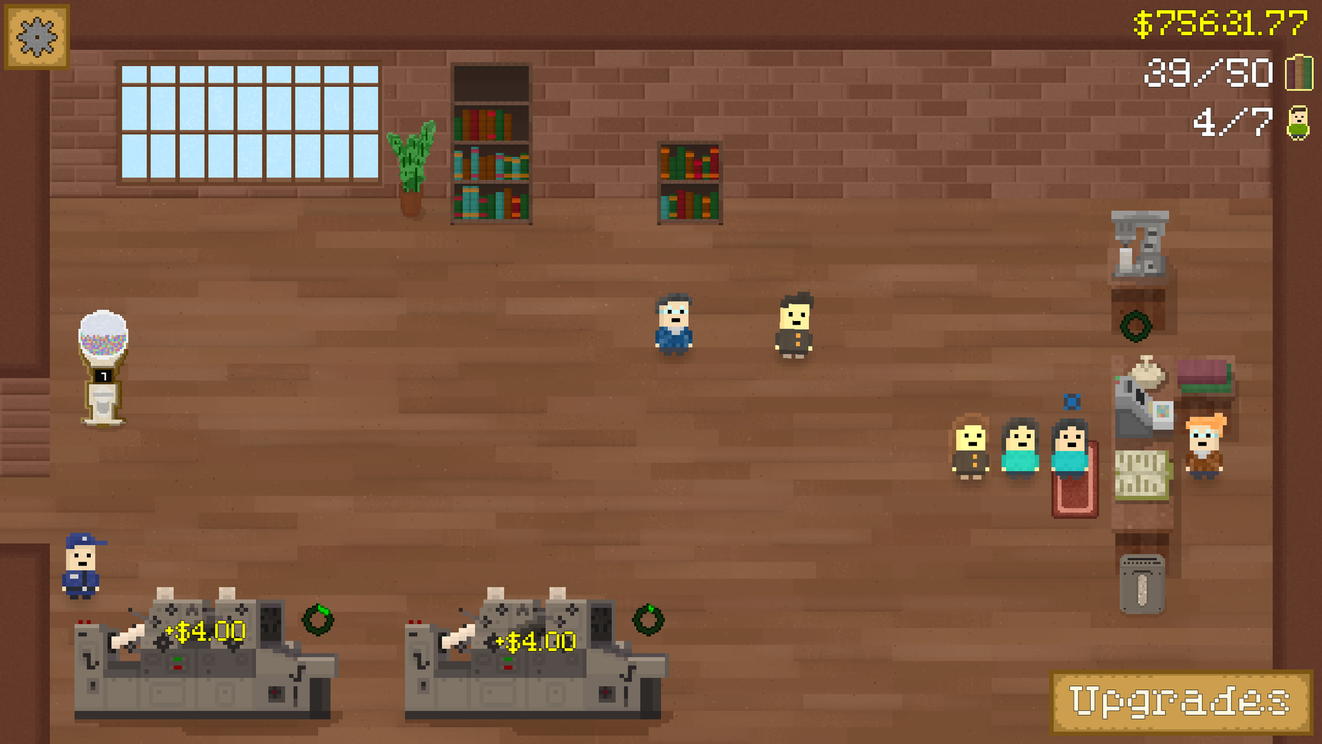 Feedback: I feel like the game should continue running when I open Upgrades, not get paused. As in, the customers and printers and stuff. Right now, when I open Upgrades, they all stop. Don't know if that's by design, but I feel like they should continue as normal.